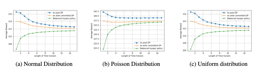 图2 不同分布下的平衡短视策略与事前、事后动态最优策略对比