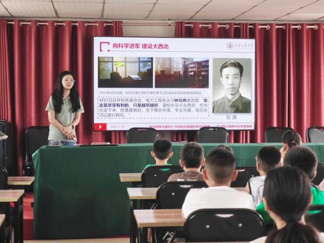 硕士研究生官昕姝以“西迁精神永放光芒”为主题展开宣讲,她生动讲述了交大西迁的壮阔历史与动人故事,让同学们在聆听中深切感悟先辈们“向科学进军,建设大西北”的赤诚风采,厚植家国情怀,传承奋斗精神。博士研究生郭旺则带来放电等离子体的科普讲座,其深入浅出的讲解、丰富详实的内容和生动鲜活的案例,深深吸引了在场同学,让“科技报国”的种子悄然扎根心中。