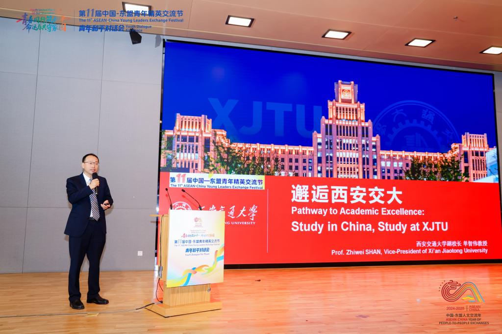 本次活动以“青春同行筑和平 命运与共守家园”为题。会上,中国与东盟十国青年代表围绕和平与文化交流、和平与经济合作、和平与科技创新等展开交流发言。西安交大李家胜副教授,马贵元副教授,西安交大校友、优艾智合机器人公司副总经理关键分别主持交流发言。