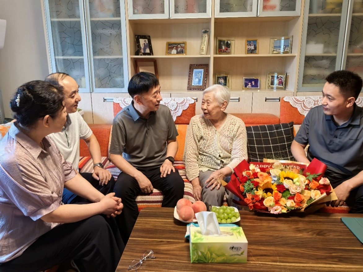 随后,张天琦一行慰问了西安交大归侨侨眷、西迁教授顾骏声。在亲切的交谈中,详细了解了顾骏声教授的生活起居、身体健康状况以及海外亲人的近况,对其家庭传承的良好家风以及海外亲人所取得的成就给予了肯定,对西迁教授们为中国西部科技教育事业的发展做出的卓越贡献予以赞扬。