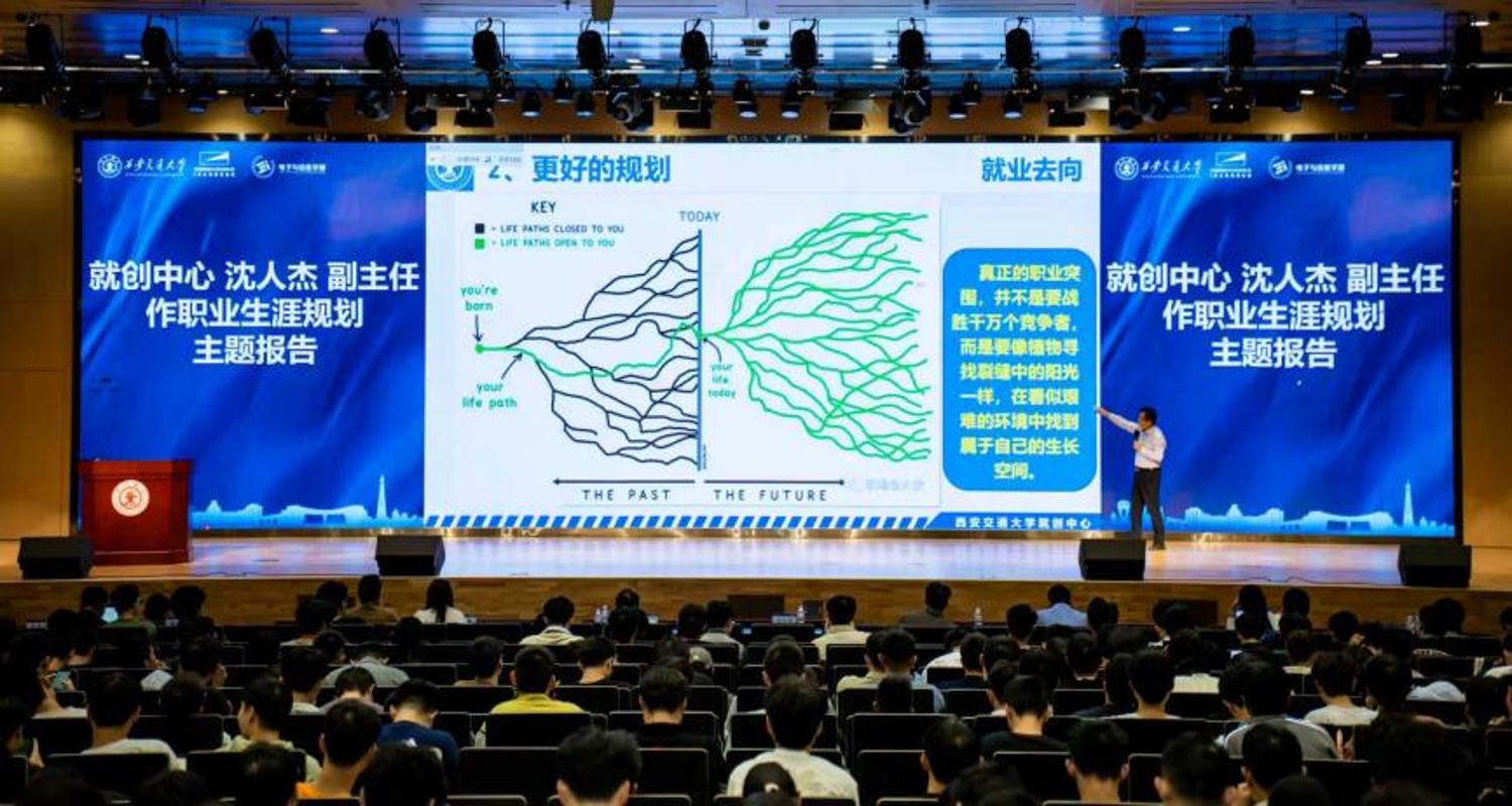 沈人杰为全体新生作职业生涯规划专题报告。他阐述了当前就业市场的挑战与研究生阶段时间的紧迫性,并指出大家“要有要求,要有规划,要做准备”。沈人杰鼓励大家从入学起就思考如何丰富个人履历,通过积极参与科研竞赛和社会实践,不断提升综合能力。他建议同学们主动拓展人脉,提前联系意向博导或企业HR,争取发展先机。沈人杰指出,每位同学都应树立“这是你的人生”的主人翁意识,善用学校就业中心提供的各类资源与服务,在行动中明确未来方向。