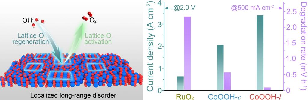 该研究成果以《规整重构CoOOH催化剂的长程无序度用于阴离子交换膜电解水》(Localizing the long-range disorder of reconstructed cobalt oxyhydroxides for anion exchange membrane water electrolysis)为题发表在国际权威期刊《德国应用化学》(Angew. Chem. Int. Ed.)上。西安交通大学为本文第一通讯单位,西安交通大学化工学院博士生赵静璇为本文第一作者。以上工作得到基金委面上/青年项目、陕西省三秦英才引进计划项目、陕西省秦创原高层次创新创业人才项目、西安交通大学青年拔尖人才项目等支持。西安交通大学大型仪器设备共享实验中心提供相关表征分析支持。