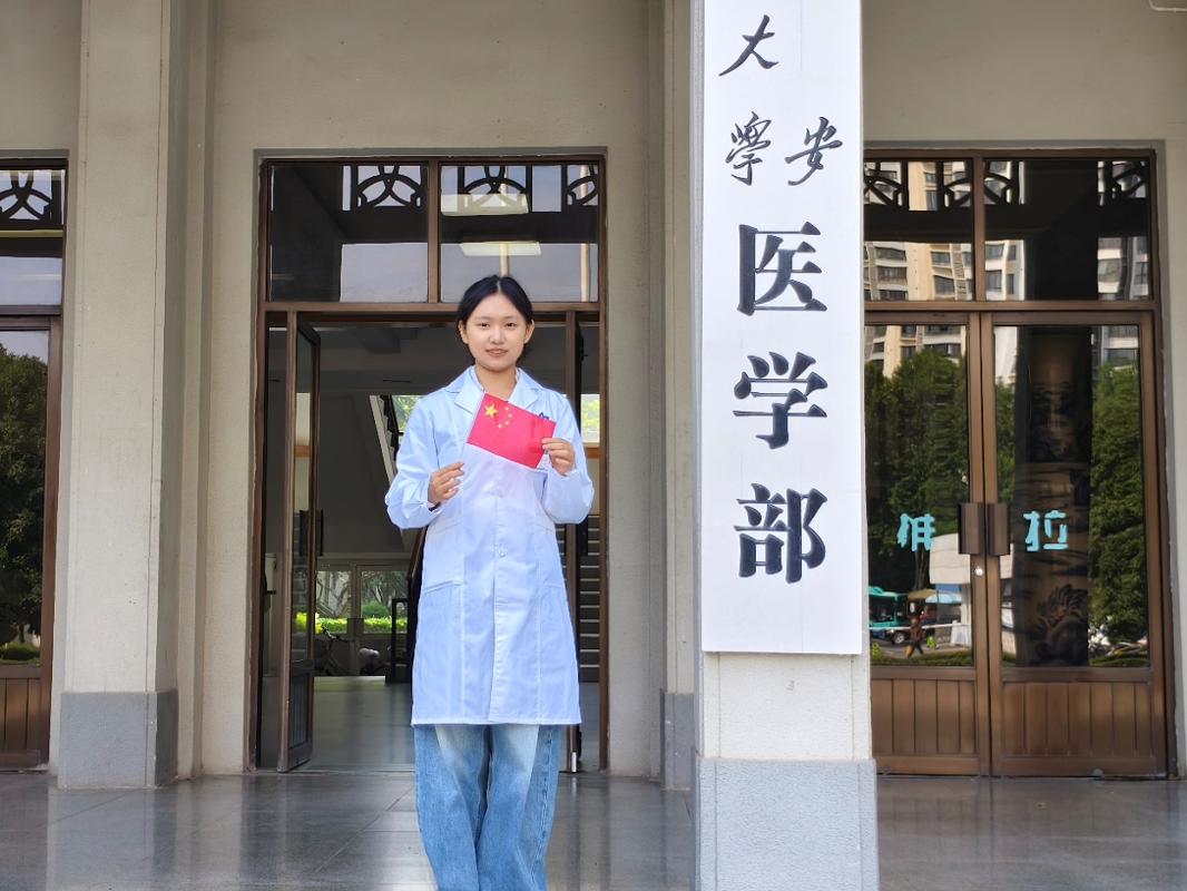 来自规培1(2102)班的杨馥璟祝福祖国:“愿祖国永远山河锦绣、国泰民安。” 她深知,医者之路没有捷径。“健康是民族的根基。作为临床医学生,我们要以扎实的理论功底、严谨的治学态度、温暖的人文关怀、无畏的奉献精神,扎根于课堂与一线,守护每一个生命的尊严,成为祖国医疗卫生防线的忠诚卫士。”她表示,将在实习中积累临床经验,在操作中锤炼过硬本领,用青春与汗水为祖国的医疗事业注入蓬勃力量。