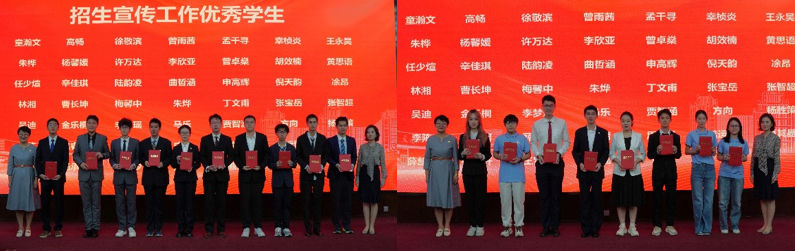 20个招生宣传先进集体、1名招生卓越贡献奖获得者、313名优秀师生、57个优秀校友集体以及105名优秀校友和社会人士代表获颁奖牌或荣誉证书。