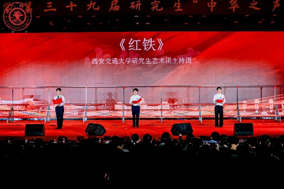本次比赛还特别邀请了西安交通大学研究生艺术团表演。西安交通大学研究生艺术团仙交仙乐合唱团深情演绎了《黄水谣》,以悠扬婉转的旋律和细腻动人的和声,描绘了黄河儿女对故乡的深切眷恋,展现了中华民族在苦难中的坚韧与不屈。研究生艺术团主持团带来的朗诵节目《红铁》,以铿锵有力的语言和饱满激昂的情感,讴歌了革命先辈的坚定信念和崇高理想,展现了交大学子传承红色基因、担当时代使命的坚定决心。