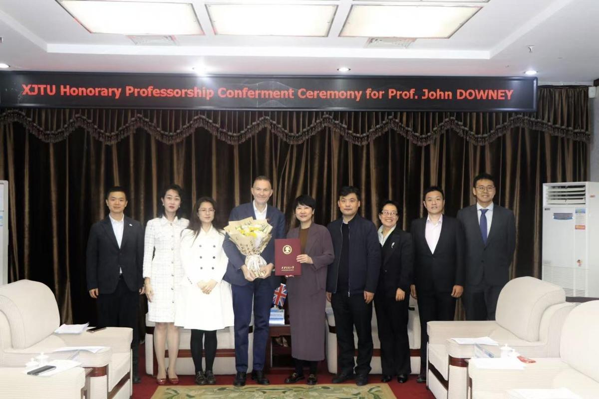 10月16日上午,欧洲科学院院士、英国社会科学院院士、拉夫堡大学协理副校长约翰·唐尼教授受聘西安交通大学名誉教授,西安交通大学党委副书记王欢会见约翰·唐尼并为其颁发聘书。西安交大国际处、新闻与新媒体学院、体育学院相关人员参加授予仪式。