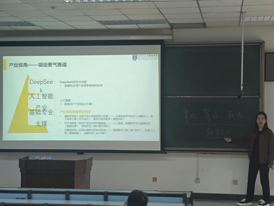随后,第二场“新生养成教育之大学生学业职业规划讲座”举行,旨在探索“工科+金融”复合型人才的发展新路径,为新生学业规划指明方向。讲座邀请卡迪夫大学金融学硕士、CFA/FRM双持证人、资深金融培训师、西安博成基金投资顾问张冰玉,为同学们带来一场题为《工科+金融:穿越周期的复合人才养成路径》的前沿分享,从宏观趋势与职业体系层面逐步深入讲解。