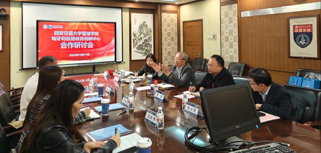 会谈中,冯耕中介绍了管理学院发展近况和国际化办学成果。他指出,学院建有“管理科学与工程”和“工商管理”两个国家“双一流”学科,核心实力雄厚。同时,学院拥有AACSB国际认证并运营着四个成熟的中外合作办学项目,国际化办学经验丰富,具备了与国际顶尖商学院平等对话、深度合作的能力与信心。耿健分享了其深耕中东欧地区30余年的经验与见解,并提出了以“投资银行”思维整合办学资源的思路。