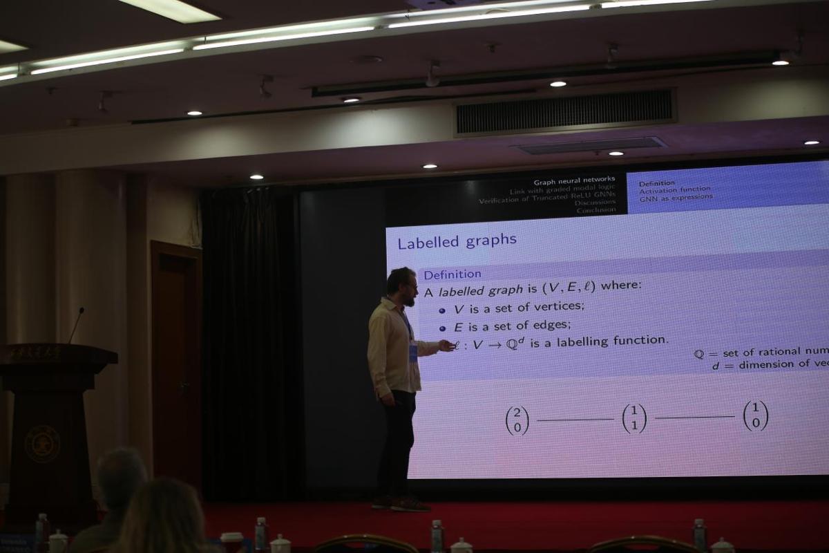 法国里昂高师François Schwarzentruber教授报告了“图神经网络的形式化验证”,通过引入截断ReLU与模态逻辑相结合的方法,实现了对GNN行为的可验证性分析。