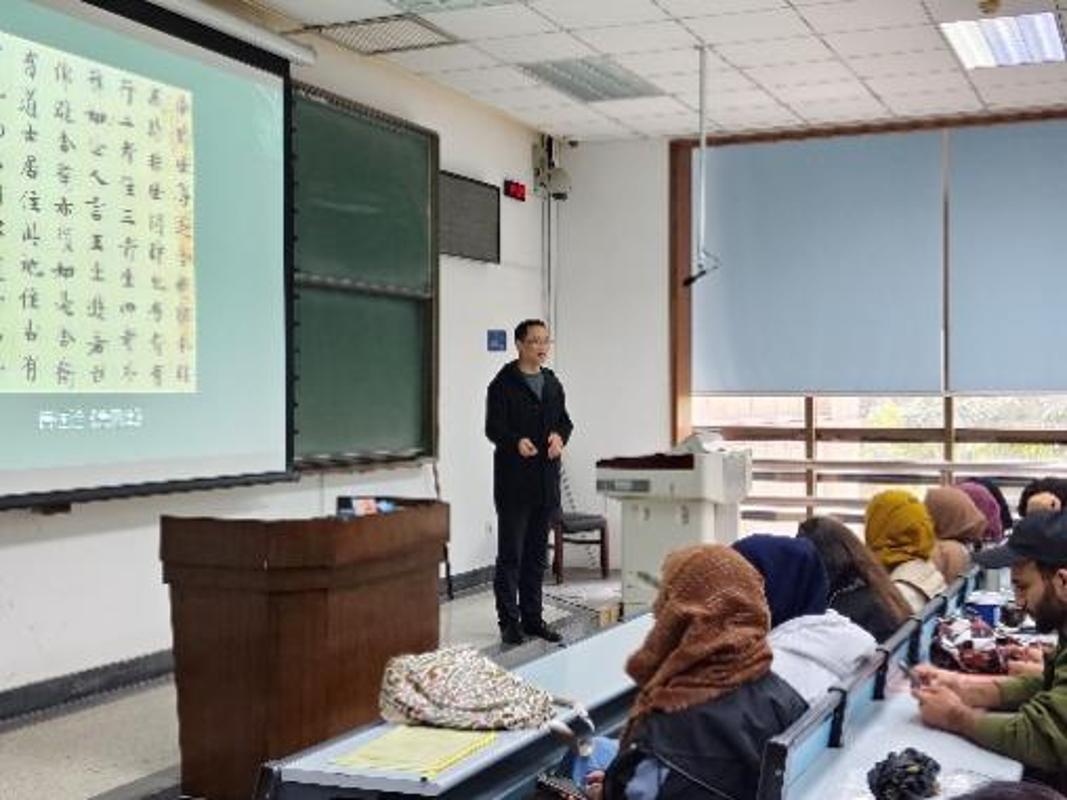 10月22日下午,国际教育学院在兴庆校区举办第十七期"交小留读中国"专家系列报告讲座。本次讲座特邀人文学院党委副书记、陕西省青年书法家协会主席王劲教授担任主讲,为来自各国的留学生带来了一场精彩的中国书法文化盛宴。