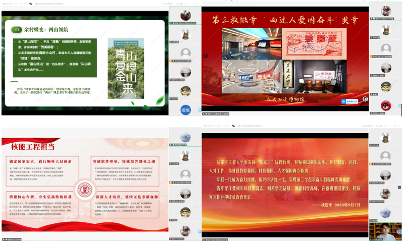为深入学习贯彻党的二十大精神,加强高校间学生党支部的交流与合作,探索党建与学科交叉融合新模式,西安交通大学能源与动力工程学院与哈尔滨工程大学数学科学学院成功举办了主题为“传承精神血脉,共筑学科未来”的党支部共建活动。西安交通大学能动学院2024级热流科学与工程硕士第一党支部、2024级热能工程硕士党支部、2024级核科学与技术硕士第二党支部、2025级流体机械硕士党支部、2025级热流科学与工程硕士第二党支部,哈尔滨工程大学数学学院智能数据分析研究生党支部、本科生第一党支部、本科生第二党支部齐聚云端,共话初心使命,共谋学科发展。