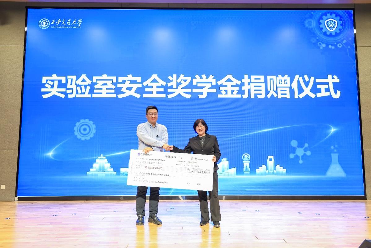 启动仪式上举行了奖学金捐赠仪式。北京库巴扎信息科技有限公司慷慨捐赠,设立了西安交通大学实验室安全奖学金,主要用于奖励实验室安全学生网格员以及支持实验室安全相关活动。库巴扎公司董事长翟亚锋在致辞时表示,企业愿为高校实验室安全建设贡献力量,助力培育安全有序的科研环境。实验室管理处处长朱臻上台接受捐赠。