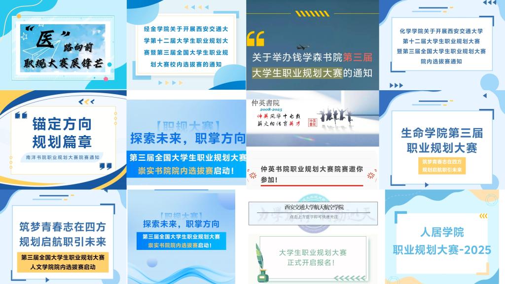 为贯彻落实党中央、国务院关于做好高校毕业生就业工作的决策部署,强化高校生涯教育和就业指导,增强大学生职业规划意识,西安交通大学将举办第十二届大学生职业规划大赛暨第三届全国大学生职业规划大赛校内选拔赛。在学生就业创业指导服务中心精心组织和学校各学院(部)、书院大力支持下,职业规划大赛校内选拔已进入筹备冲刺阶段。大赛以 “筑梦青春志在四方,规划启航职引未来” 为主题,紧扣时代发展趋势与行业人才需求。