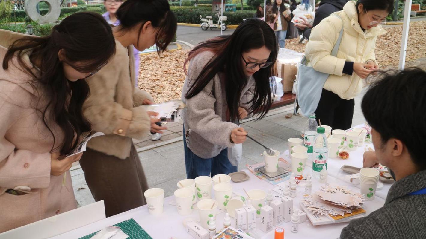 从各校区绵延数百米金色的梧桐大道,到以古典诗句装点的“梧桐诗语”亚克力板;从落叶留言板上密密的秋日心语,到“萌趣小梧桐”旁定格的一张张笑颜;从“创意梧桐”合影框中探出的灿烂脸庞,到“百变秋颜”面具墙后藏着的青春秘密——更有创新港校区师生以落叶为材,巧手制作的梧桐造型摆件、落叶拼画等创意景观,为校园增添了手作的温度与趣味。八大主题景观将自然之美与人文之趣巧妙融合,装点出一个可观赏、可互动、可珍藏的诗意校园,让每一位漫步其中的人都能感受到秋日的浪漫与温暖。