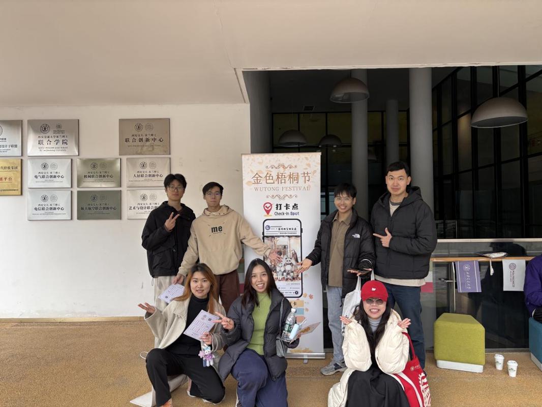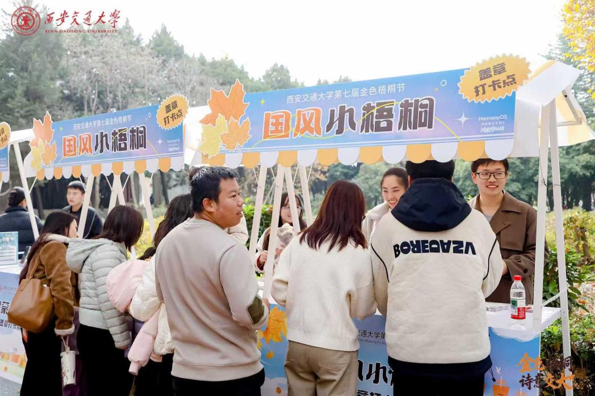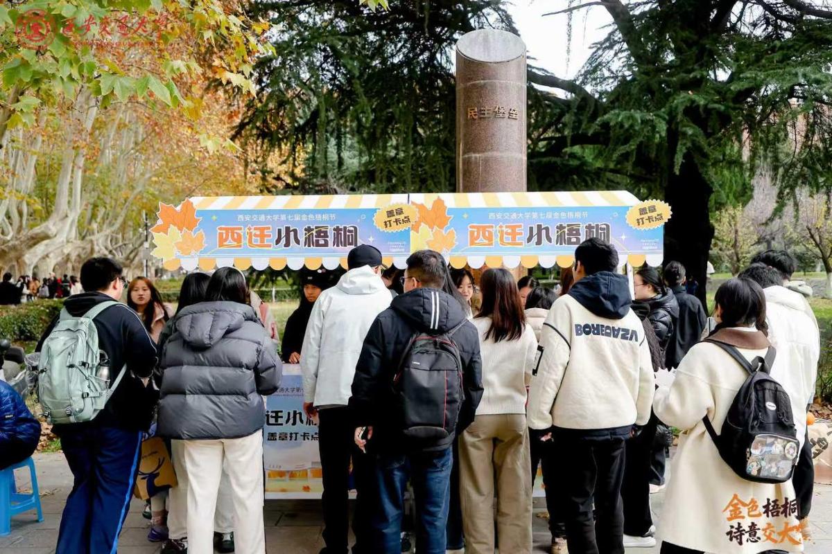 本届梧桐节精心打造多校区主题打卡点,以梧桐为媒,以印章为引,将校园化为一座可漫游、可感知的沉浸式人文课堂。在兴庆校区,六大主题打卡点开启一段融合人文与学科的金色旅程:驻足“西迁小梧桐”,历史在问答间可感可触;俯身“读书小梧桐”,亲手体验《论语》雕版印刷;凝神“数学小梧桐”,逻辑之趣与落叶共舞;巧手于“物理小梧桐”,科学之美在叶脉上精致呈现;即兴于“国风小梧桐”,吟咏填诗,演绎千年雅韵;投身“体育小梧桐”,舞龙投壶匹克球,跃动青春朝气。雁塔校区则深度融合医学特色,打造“医路梧桐”主题打卡区,将健康科普、急救体验、中医药非遗与创意互动融为一体,师生可在趣味与知识的交汇中感受医学人文的温度。创新港校区以“新港漫游”为主线,围绕涵英楼、米兰楼、阅览中心、高等工程教育博物馆、畅园社区与梧桐大道设置六大打卡点位,融合建筑美学、工程文化与社区生活。这段穿梭于三校区金色梧桐下的探索之旅,让师生在步履间沉浸人文、触摸学科、感知校园,收获一程充满趣味与启发的秋日记忆。