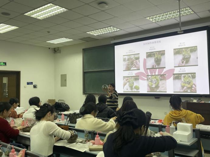 在“压力疏导实践”环节,物业中心马萍带领参训人员进行了一场别开生面的沉浸式微景观打造体验。微景观打造将心理调节与手工创作有机结合,让参训人员在指尖的艺术创作中实现压力的释放与心灵的涤荡。参训人员表示,此次培训内容实用、形式生动,是一堂别开生面的“教工快乐课堂”,不仅提供了宝贵的心理支持工具,更感受到了学校对教学管理队伍身心健康的深切关怀,也为各学院教务秘书之间加深了解、互学互鉴提供了良好平台。