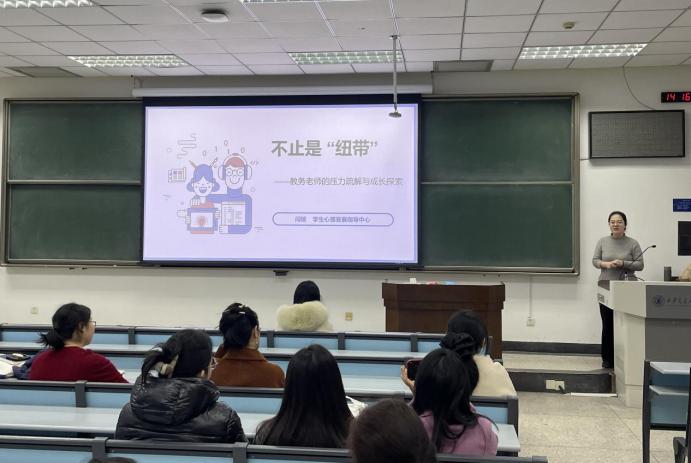 在“本科教学管理人员的压力疏导”专题讲座中,心理咨询中心闫琼结合教务管理工作实际,从教学管理工作的特殊属性切入,生动剖析了教学管理人员面临的多维度压力源。通过具象化场景还原与典型案例剖析,闫琼分享了科学认知压力、进行心理调适与情绪管理的有效策略,引导大家建立积极心态,提升抗压韧性。
