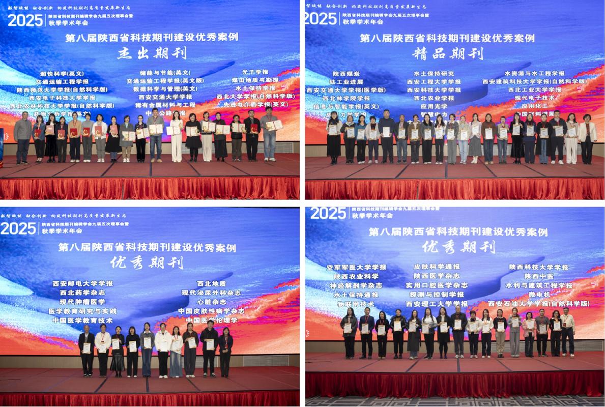 会议颁发了“陕西省科技期刊发展卓越贡献奖”,西安交大期刊中心主任张丛获奖,全省仅1项;发布了2025年度陕西省科技期刊编辑学会三秦学术出版基金入选项目,共有A类、B类项目各1项,C类项目3项,青年项目7项。张丛申报的《陕西科技期刊集群化发展的路径探索与实践》入选A类项目,编辑商丹申报的《科技期刊与科技社团协同发展机制及路径研究》入选青年项目。