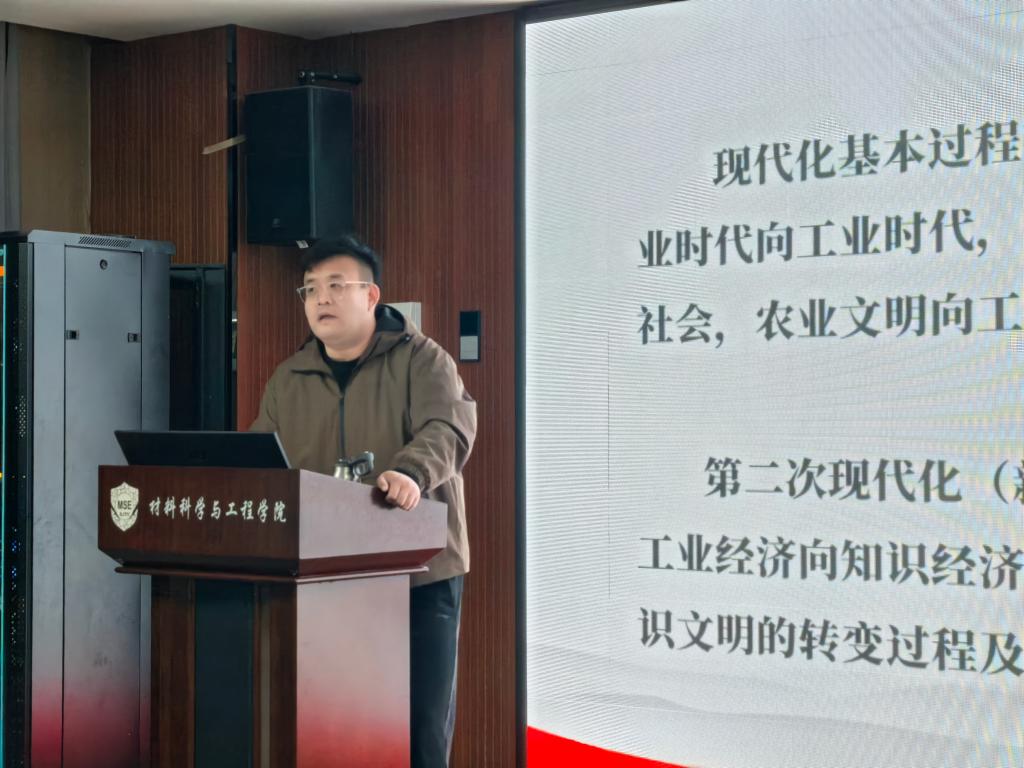 培训第一阶段,马克思主义学院副教授高飞作题为“全面把握中国式现代化”的专题报告。高飞从历史与现实相结合的视角,系统梳理了中国式现代化探索的演进历程,重点区分了“中国的现代化”与“中国式现代化”的本质内涵。他指出,中国的现代化道路并非简单照搬西方模式,而是在长期历史实践中逐步形成的独特发展路径。从近代洋务运动“器物层面学习西方”的探索,到新民主主义革命时期对民族独立和人民解放的追求,再到改革开放以来现代化建设的全面推进,中国在不断总结经验与教训中,走出了一条符合自身国情的现代化道路。报告结合新时代背景,深入阐释了中国式现代化是人口规模巨大的现代化,是全体人民共同富裕的现代化,是物质文明和精神文明相协调的现代化,是人与自然和谐共生的现代化,是走和平发展道路的现代化。通过深入浅出的讲解,高飞引导同学们深刻理解中国式现代化的理论逻辑与现实意义。