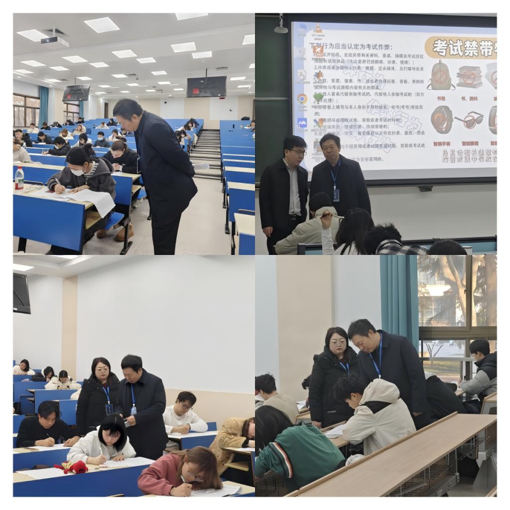 学校高度重视期末考试的组织管理工作。1月6日,校党委常委、副校长严俊杰带队深入考场一线检查指导。详细查看考场布置、考试环境、监考履职及学生应考情况,并与教务处、相关学院负责人、监考老师进行现场交流。他表示,考风考纪是学风、校风建设的重要体现,关系到人才培养质量和学校声誉,全体监考教师和考务人员要恪尽职守,严格执行考试规章制度。各教学单位要加强学生的诚信教育,引导学生端正态度,认真备考,以真实成绩检验学习成效;相关部门要全力做好考试期间的各项服务与保障工作,为考生营造公平、公正、舒心的考试环境。