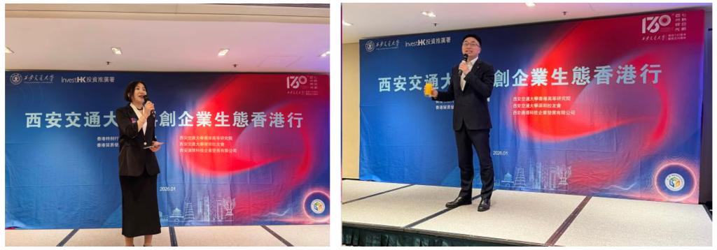 1月19日晚,在香江之畔,西安交大科创企业生态香港行交流会举行。西安交大科研院副院长陈娟、香港理工大学内地事务发展总监陆海天致辞,对到访企业家表示欢迎。本场交流会得到了香港投资推广署、西安通理科技企业发展有限公司的支持,由西安交大2006级校友刘璐女士主持。
