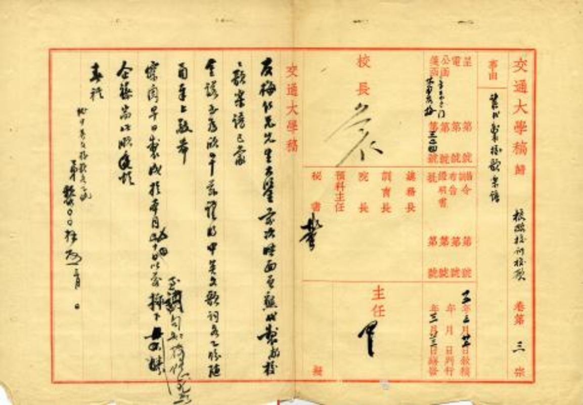 学术发展,将“研究高深学术”列为办学宗旨,改组成立交通大学研究所并亲任所长,支持中国数学会等学术团体在校活动,创办《科学通讯》《交大经济》等一批学术期刊。广邀著名专家学者到校讲学,包括马可尼、玻尔两位诺贝尔奖获得者在内的中外名家纷至沓来,极大拓展了师生学术视野。