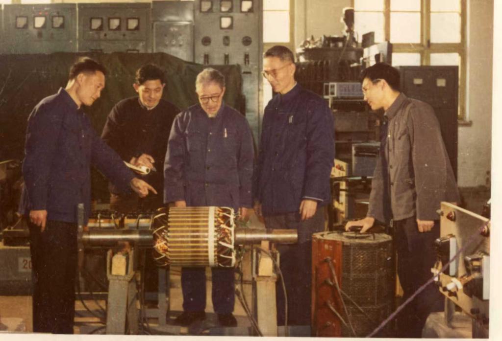 钟兆琳(正中)晚年在电机实验室
