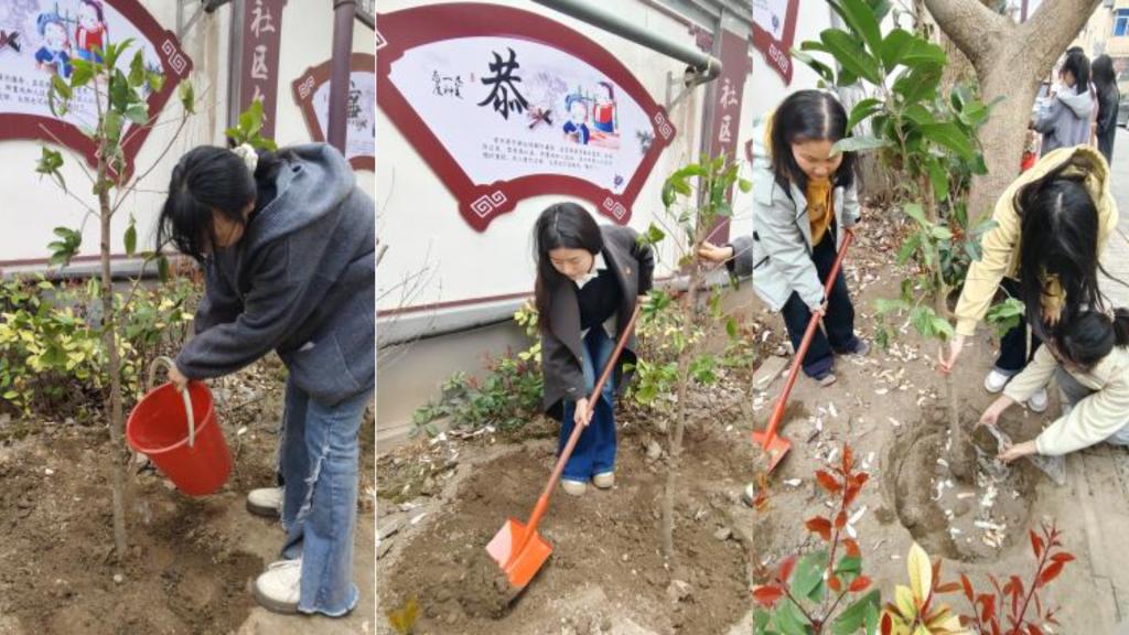 3月12日,碑林区太乙路街道建东街社区党委、经金学院崇实书院师生联合第二党支部、经金学院硕5194班党支部以及化工学院2024级化机硕士生党支部共同开展“春风拂枝植新绿,同心携手护家园”植树节主题党日活动。建东街社区党委书记杨昕、经金学院崇实书院师生联合第二党支部学院指导老师鄢哲明、经金学院崇实书院师生联合第二党支部书院指导老师刘凯参加活动。