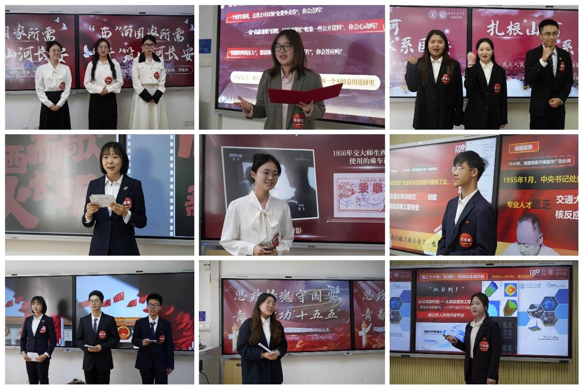 宣讲过程中,参赛选手们以当代青年视角,结合历史案例、科研实践与社会热点,用真挚的情感、严谨的逻辑和生动的表达,将抽象的国家安全理念转化为可感可触的青春话语。有的队伍结合专业所学与校史积淀,讲述一代代交大人践行国家安全责任、助力国家发展的动人故事;有的队伍聚焦网络安全,剖析网络窃密、信息泄露等安全隐患,呼吁青年学子提高防范意识;有的队伍围绕文化安全,结合中华优秀传统文化传承,阐释青年一代守护文化根脉的责任;还有的队伍关注科技安全,结合校史中科研工作者坚守岗位、守护科技安全的事迹,呼吁青年学子传承西迁精神,筑牢科技安全防线。选手们各展所长,或激昂澎湃或娓娓道来,以“小切口”展现“大主题”,用青春之声传递国安强音,赢得了现场评委和观众的阵阵掌声。