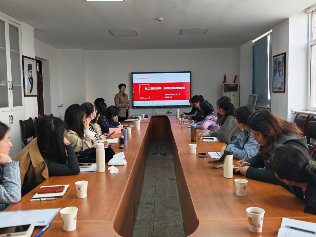 会议指出,正确政绩观不是抽象概念,而是体现在每一篇论文的政治把关、每一次服务师生的具体行动、每一本期刊的品质提升之中。会议强调,期刊工作必须坚守“立党为公、为民造福”的根本立场,正确处理“显绩”与“潜绩”的关系,摒弃急功近利思想,多做打基础、利长远的工作,坚定不移以高质量党建引领期刊事业高质量发展。会议要求,政绩观不仅关乎个人成长,更关乎期刊发展方向和学术生态净化。全体党员要将正确政绩观内化于心、外化于行,以“十年磨一剑”的定力深耕学术出版,办出党和人民满意、学术界认可的高水平期刊。