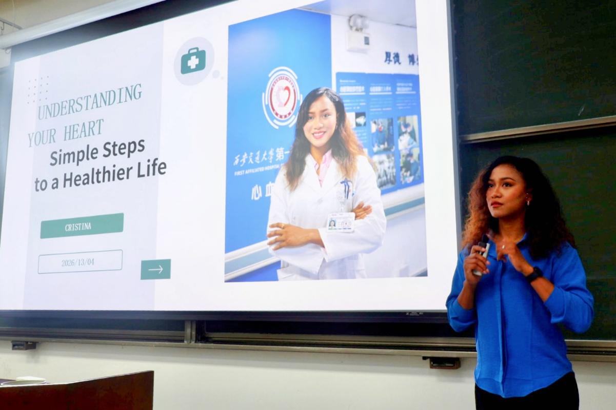 讲座尾声,爱琳总结道:“保护心脏并不难,从规律运动、均衡饮食和管理压力开始,每天的小改变都能带来大不同。”她鼓励同学们珍惜在交大的学习时光,关注自身健康,并自信地分享知识、促进跨文化交流。
