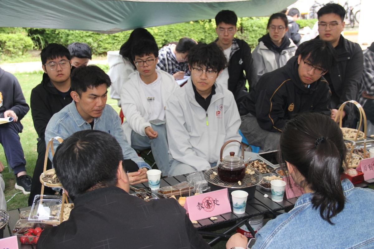 春风拂绿,草木芬芳,茶香袅袅,暖意融融。为进一步丰富校园文化生活,舒缓师生学业与生活压力,搭建师生零距离交流平台,传承中华优秀传统茶文化,4月22日下午,西安交通大学南洋书院在东八草坪举办 “舍予茶馆・春茶叙” 主题活动,融合鲜果慢烤、漆扇手作、香囊DIY、石膏娃娃绘制等多元体验,邀请学院、学校各职能部处及书院教师与学生围炉煮茶、共话交流。活动由南洋书院学生会主办,邀请电子学院教学副院长谭文疆、微电子学院副院长程军、电气学院教授张耀、南洋书院院务副主任顾蓉、学生处杨艳丽、网信中心杨洁、后勤保障部牛晨、教务处张瑶以及辅导员王彦清,与二十余名学生代表共议校园事。