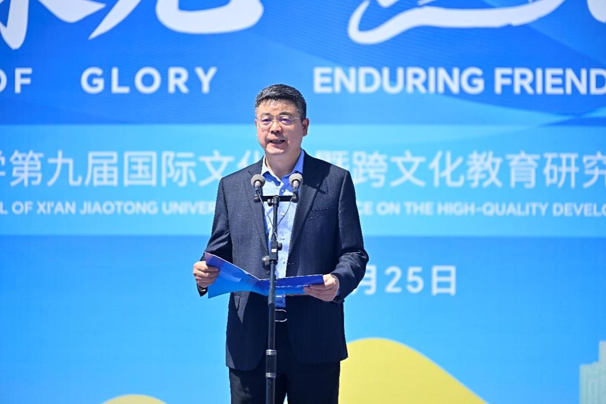 单智伟、王胜刚、高进孝等嘉宾共同推动象征着多元文化交融与丝路友谊传承的启动轴,西安交通大学第九届国际文化节正式开幕。