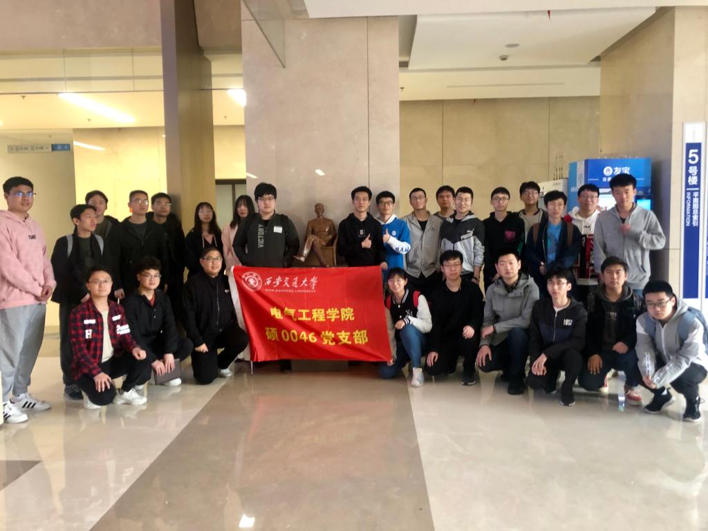 支部同志重温习近平总书记来校考察讲话内容及新闻报道,团支部书记郭泓霖讲述“中国电机学之父”钟兆琳教授的西迁故事。支部同志共同参观涵英楼一层的西迁教授铜像,与“中国电机之父”钟兆琳教授铜像合影留念。