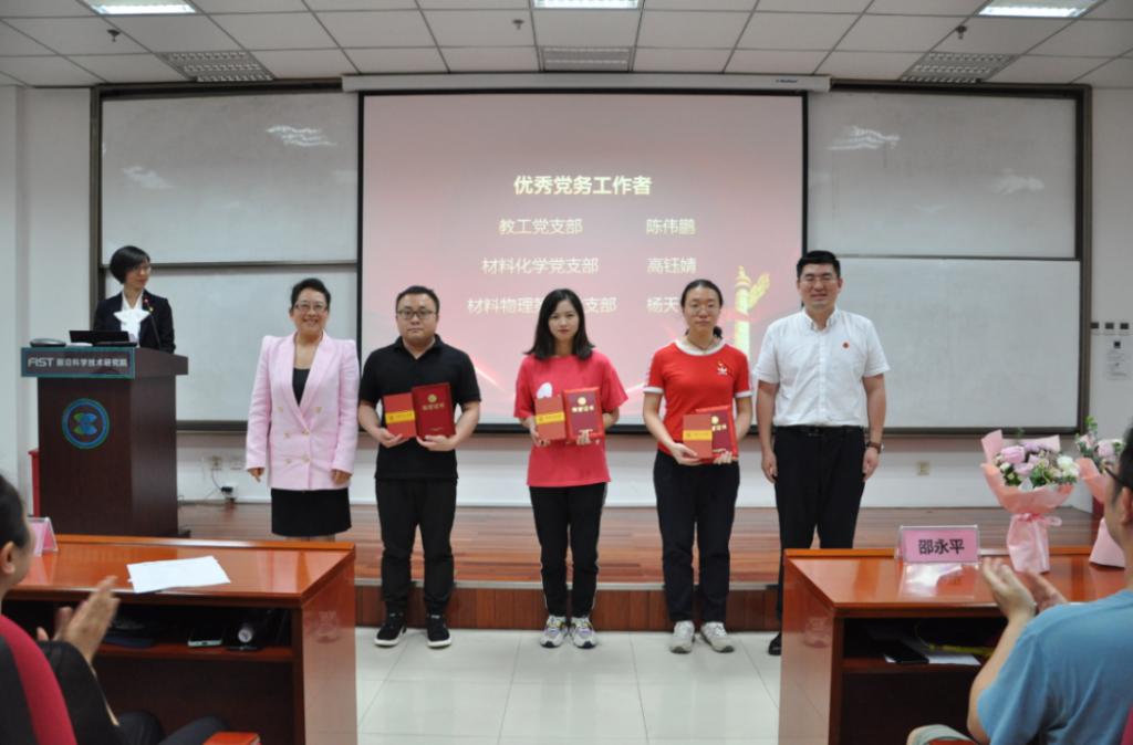 近日,前沿院党委组织召开了“两优一先”表彰大会,对本年度优秀党员、优秀党务工作者以及先进党支部进行了表彰。前沿院党委副书记刘莹、领导班子以及全体师生党员出席大会。前沿院李妙辉主持大会。