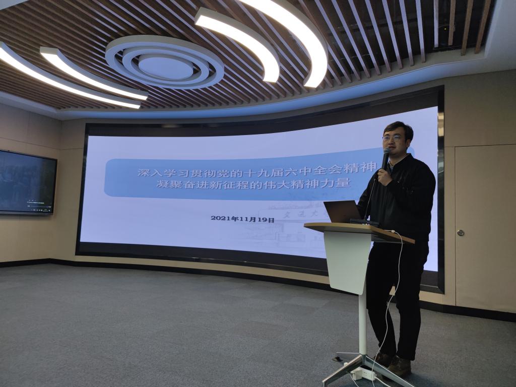 校党委宣传部副部长梁辉以“深入学习贯彻党的十九届六中全会精神,筑牢高校意识形态阵地”为题做报告,结合学校工作实际,就如何开展党的十九届六中全会精神学习,做好高校意识形态领域相关工作作了分析。