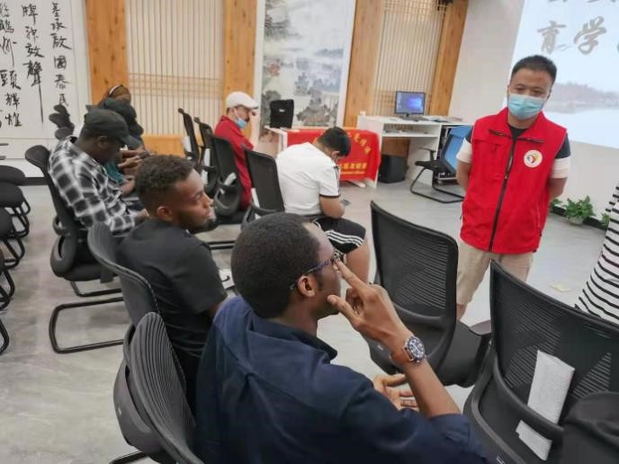 宣讲人Manzar向大家讲述他在中国留学的经历与感受。他希望更多人能够了解到历史文化悠久而又日新月异的中国,并希望自己的祖国巴基斯坦与中国能够继续保持良好的关系。宣讲结束后,部分同学与Manzar展开讨论,询问Manzar求学结束后想要去哪里就业等问题,Manzar表示想要为电力运输贡献自己的力量。丰富的宣讲内容,融洽的交谈,让中外学生之间的关系更加紧密,同时也让中国故事得到了更好的宣传和发扬。