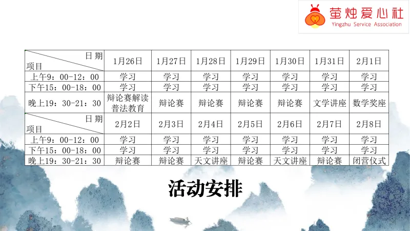 冬令营活动安排