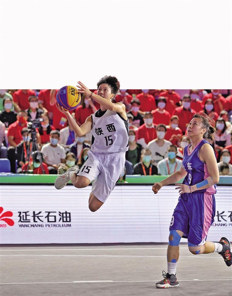 9月20日,十四运会三人制篮球女子U19组决赛,陕西队与山东队比赛