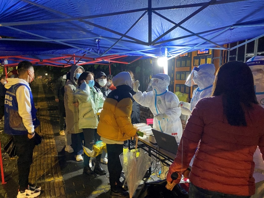 12月16日下午6点,西安交通大学第二附属医院接到西安市疫情防控指挥部指令,需要支援雁塔区全员核酸检测工作。医院立刻安排部署,医务人员纷纷主动请缨,短时间内即组织了一支50人的核酸采样队,于晚7时紧急出发,执行核酸采样任务。根据雁塔区统一安排,本次二附院核酸采样队医护人员主要负责曲江创意谷、龙湖星悦荟、大悦城等13个采样点的采样工作。市民们有序排队,队员们冒着严寒,顾不上吃饭喝水,持续工作,一直忙到凌晨,将采样任务完成、将采样点的垃圾处置干净才回酒店休息。截止16日凌晨,共采集13224人次。16日上午,采样队继续为雁塔区居民进行核酸采样,共完成采样10081例,直到雁塔区新一轮全员核酸检测完毕。采样队员马忆楠说:“听见最多的是谢谢您,辛苦了!虽然吹着冷风但是心里很暖。”