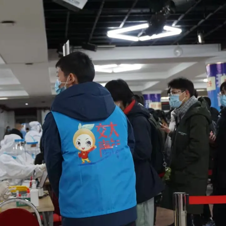 本轮核酸检测工作能够井然有序迅速开展,除大家积极配合以外,还有一群身影功不可没。他们就是“交大青年”志愿者,他们在本次抗击疫情的过程中无时不刻不展现着青年应有的精神和风貌。为检验试管贴条码、维持秩序……他们与医护人员一起,哪里有需要,就出现在哪里,他们是一抹交大蓝,代表的是疫情阴霾散去后晴朗天空的明净。