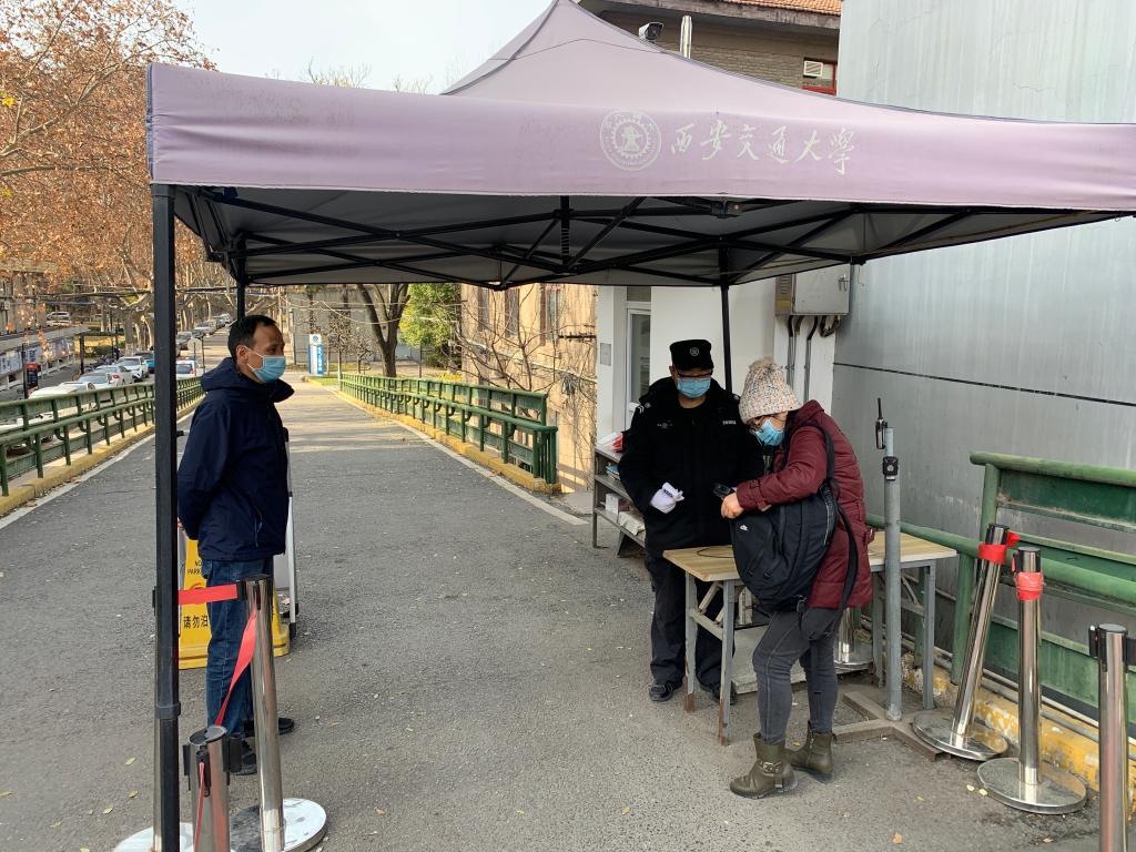 “请大家排好队,佩戴好口罩,保持一米线,提前打开一码通……”在西安交通大学各个校区的核酸检测采样点,每一处都能看到医务工作者认真核酸采样,广大师生秩序井然积极配合的场景。