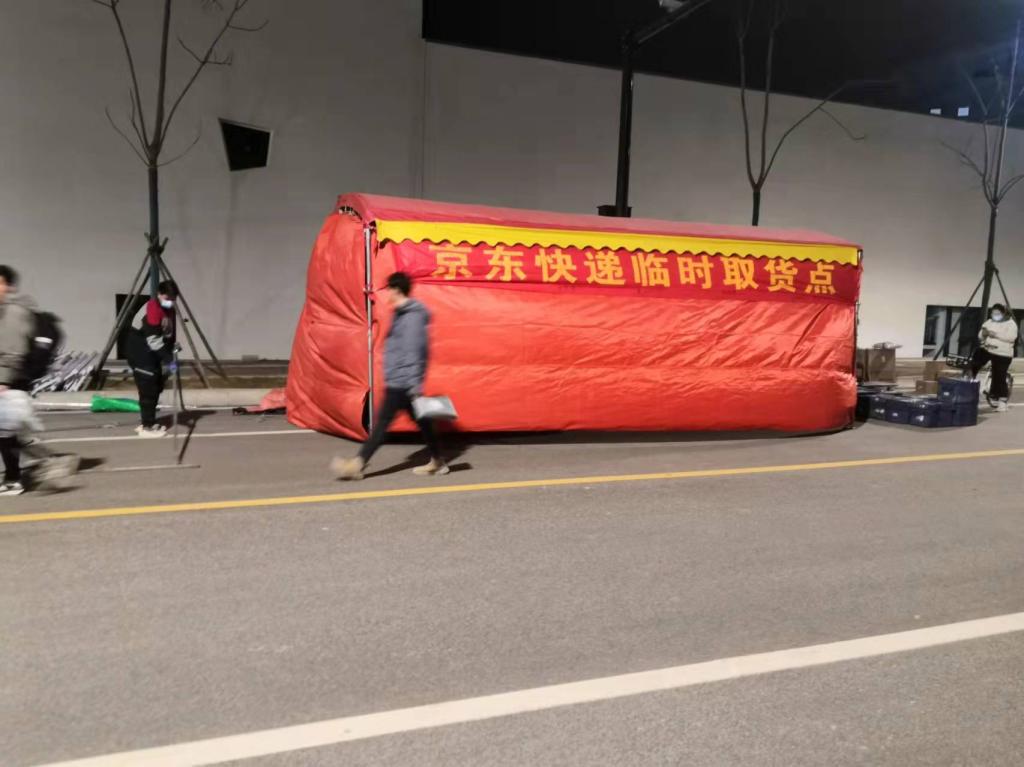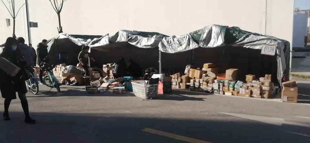 为做好疫情防控工作,快递不能直接进入宿舍区域,创新港后勤在6、7号楼南侧设置室外临时快递接收点。