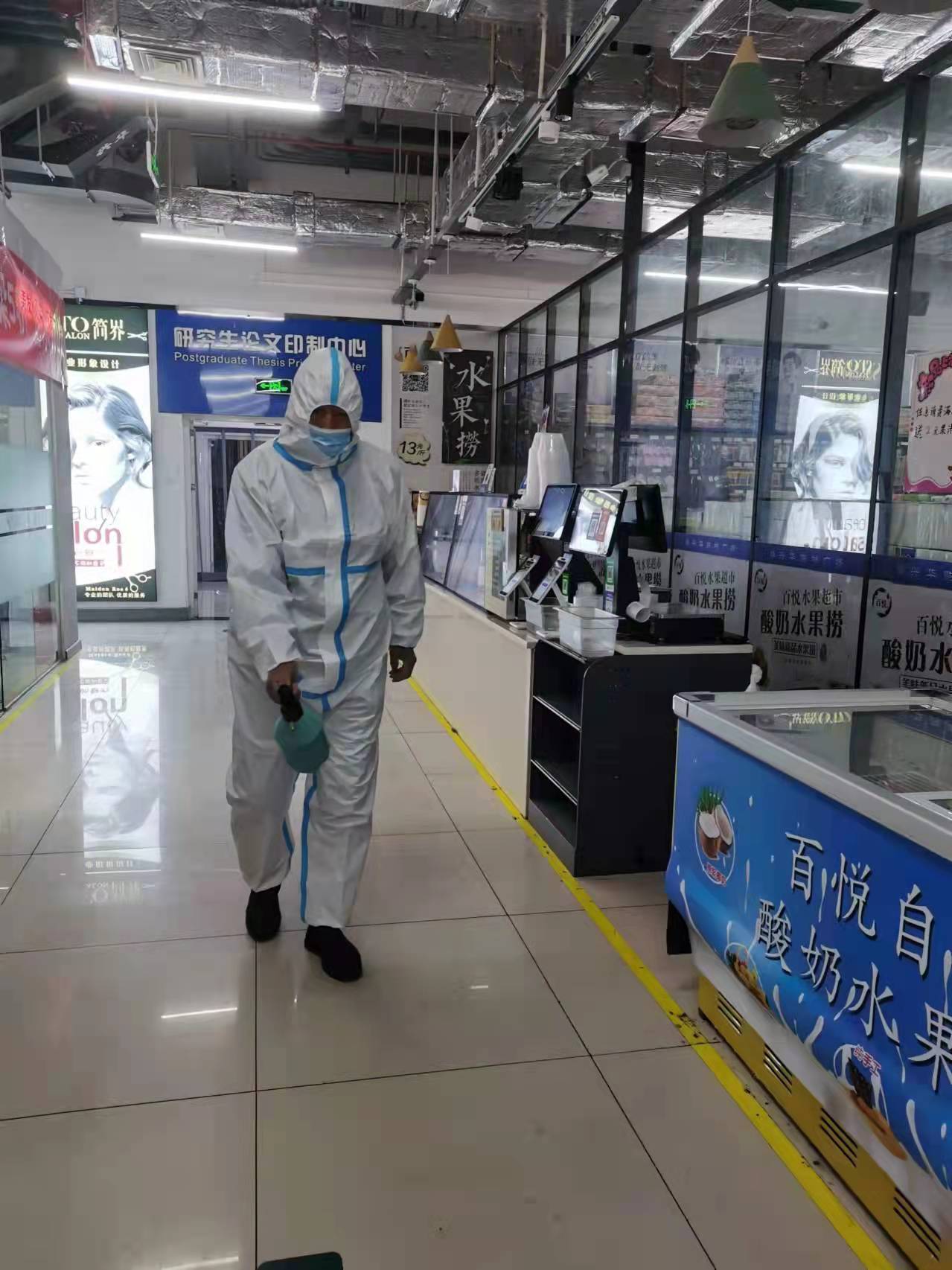 学校各个校区对教室、部分食堂、宿舍、楼宇等区域进行了集中防疫消杀。消杀人员有条不紊地对走廊、地面、墙壁、角落、门框、门把手、电梯扶手、食品展柜、桌椅、卫生角、箱柜等进行了细致彻底的消杀,特别是卫生间内的垃圾桶、食堂后厨的边边角角、水池的底部、地漏等容易滋生细菌的“死角”均一一细致处置。