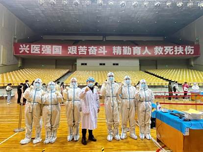 参与本次保障活动的志愿者周子惠说:“通过繁琐的步骤穿戴上防护服,我感受到了抗疫一线医生们的辛劳,感受到了抗疫一线医生们的责任与担当,更感受到了这一套防护服带给自己的责任。虽然两个半小时的志愿时间不算长,但耳朵和头已经被勒的生疼,更不要提两层防护的困难呼吸。肩苍生之希冀,成难竞之功业。切身感受医者所面临困难,更加激励我在日后的医学学习中不忘初心,坚定医学这条路。”