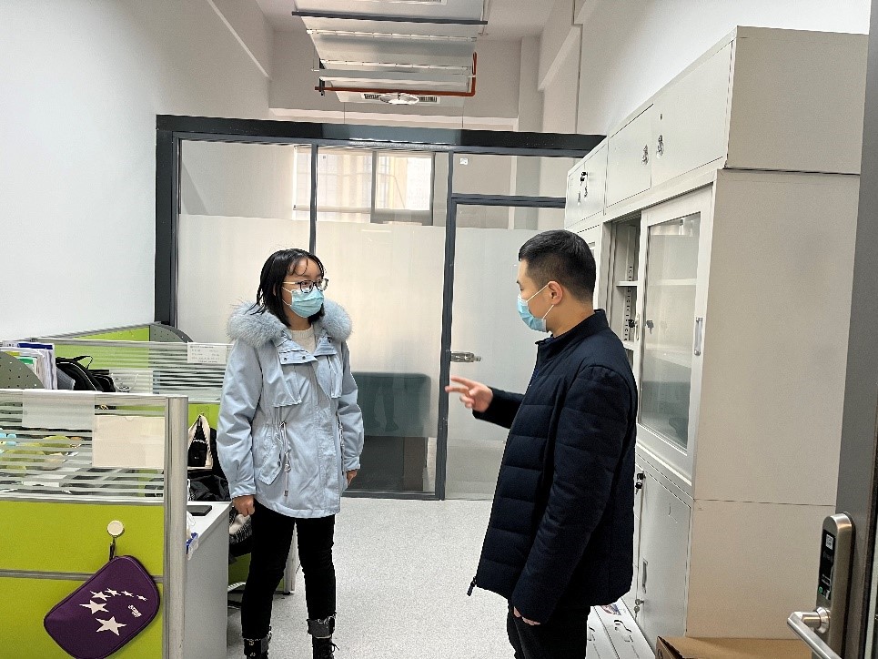 学校封闭管理以来,化工学院提高政治站位,迅速落实领导班子值班驻守创新港,统一指挥,严格执行上级各项要求。同时,学院党委协同导师、辅导员迅速摸清底数。24日下午,化工学院副院长杨贵东、党委副书记陶磊、辅导员强伟逐户走访学院实验室和教研室,对实验室安全以及教研室防控措施等方面进行检查,了解疫情防控期间老师同学们的困难需求。学院党委副书记陶磊表示:“疫情就是命令,防控就是责任,同学们的健康是我们最大的牵挂。我坚信只要坚持党的领导,把每一项工作做细做好,一定能战胜疫情。”