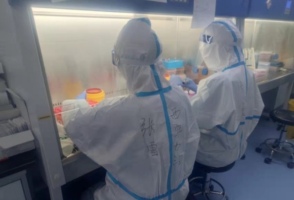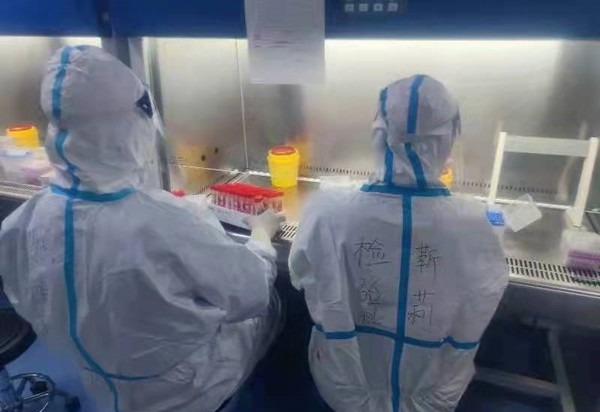 17日当晚,支援人员连夜进驻实验室,不眠不休,在日出之时完成全院8913人及990份环境样本的筛查工作,保障全院医患的安全。此后几日因封控管理,院外同志无法进驻支援,院内成员连轴转完成工作任务,期间遇一码通故障,所有信息需要手工录入,工作难度增加数倍,他们依然按时保质完成,毫无纰漏。21日晚又接卫健委指令性任务,工作人员从晚上10时进驻核酸实验室,穿防护服近九个小时不吃不喝不上厕所,一直战斗到次日6:45最后一个结果发出,才稍作休息,又准备迎接新一天的工作。