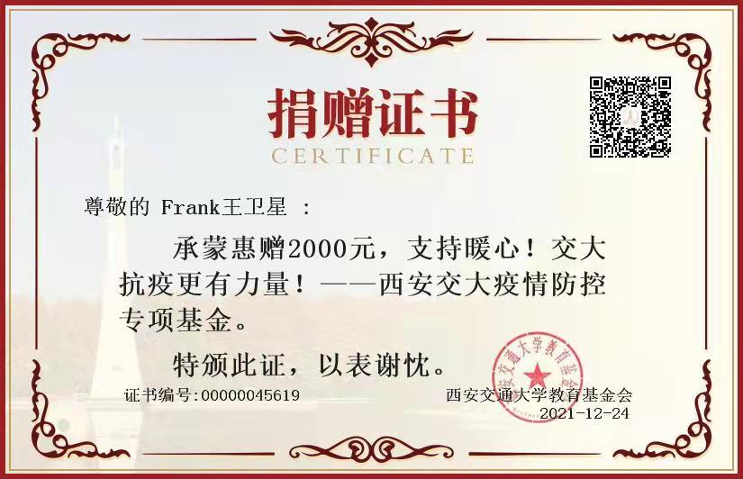 校友部立刻在全国校友组织秘书长群中发布了《西安交通大学疫情防控物资需求表》,广泛动员,很快得到了校友组织和广大校友的积极响应,各地校友纷纷打来电话询问学校情况,表达对母校的支持以及对广大师生员工的关心。截止12月24日,河南校友会和校友企业洛阳863创智广场同中原大数据研究院共捐送200张行军折叠床;浙江校友会捐款2万元购买防疫用品,浙江校友会会长、杭州巨星科技公司董事长、1982级机械铸造专业仇建平校友捐赠KN95口罩3万只,1995级材料专业吴承龙校友捐助医用口罩2万只;东莞校友会捐赠100套医用防护衣;就创中心联系校友负责企业四川空分集团捐赠10万只口罩;镇江校友会捐赠3000个防护口罩;深圳市云积分科技有限公司创始人、1988级少年班校友许先才捐赠300套防护服等4种组合物品;2017级MBA校友钟淑月捐赠学生志愿者2000只口罩……一天时间,福建校友会、常州校友会、惠州校友会、土木与建筑学科校友会等发动校友和学生家长捐赠学校数万元。沈阳校友会、重庆校友会等校友组织也纷纷发动校友捐助学校疫情防控,校友的捐助行动仍在继续。据不完全统计,不到一天时间,校友捐款近15万,捐赠防疫物资逾25万件。