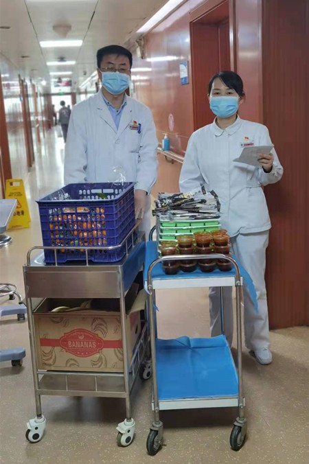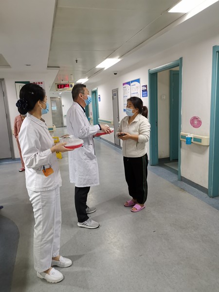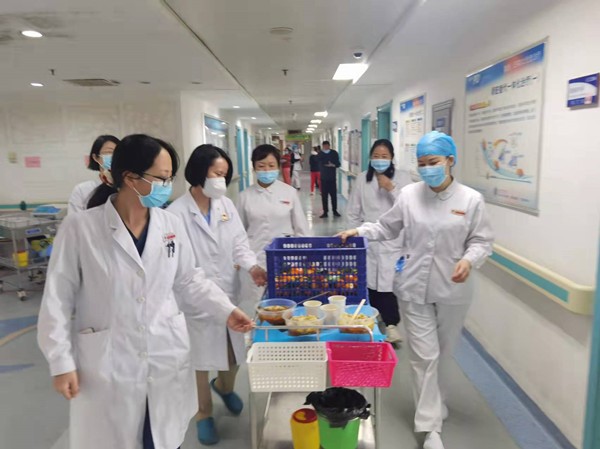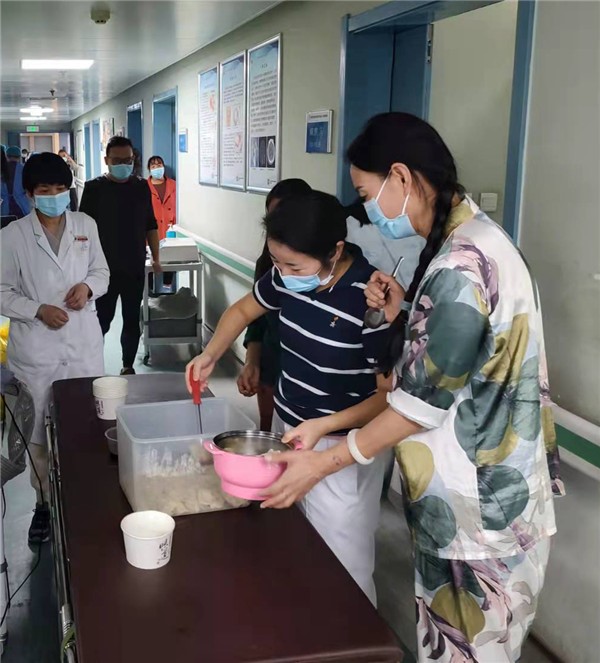 肾病科的饺子爱心牌。“在病房让患者们吃上了我亲手包的饺子。”肾病科的一位医生乐呵呵地说着。为了缓解患者的心理压力,肾病科想方设法收集到了包饺子用的食材,科室医护人员齐动手,一起包饺子,说说笑笑中,一个个饺子装满餐盒,是对患者的关爱、是对节日的赞美。