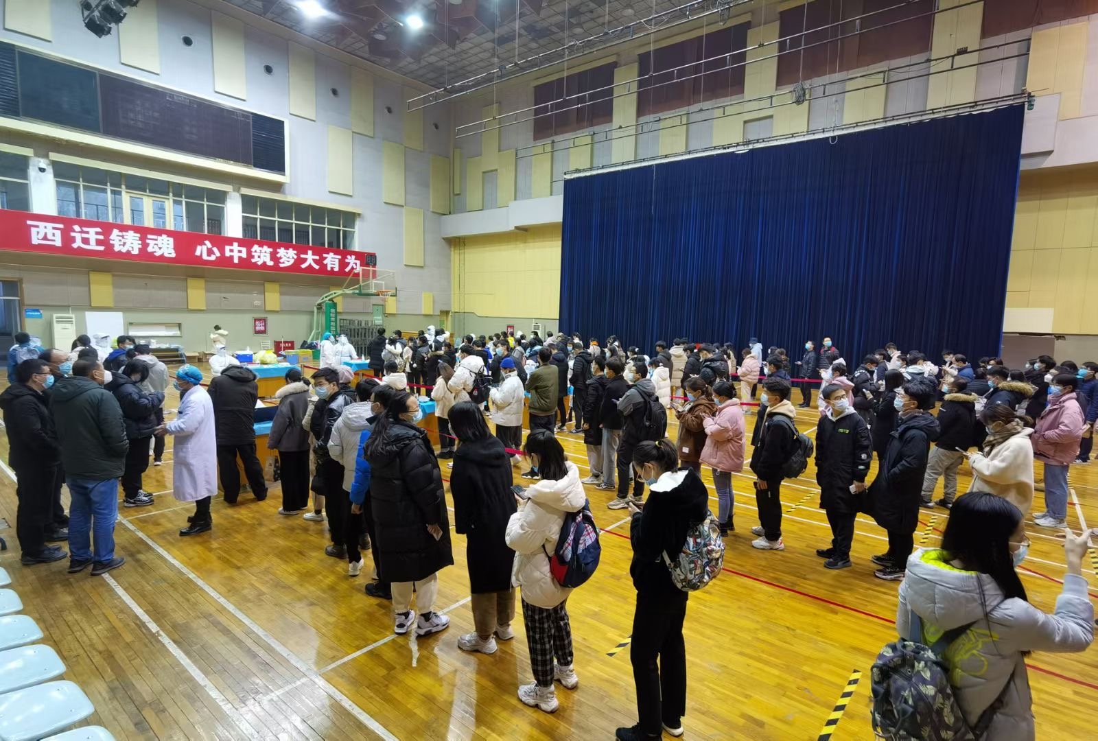 截至12月16日,西安本轮疫情已报告8例确诊病例。根据疫情防控需要,14日当晚,西安交通大学第一附属医院紧急进行核酸检测,全员阴性。次日,西安交通大学雁塔校区在505体育馆开展全员核酸检测,宗濂书院学子积极参与到红十字协会组织招募的校医院核酸检测志愿保障中。